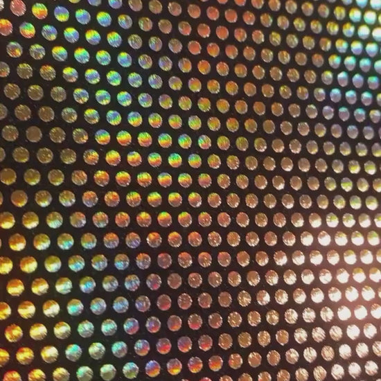 - Gold holographic polka dots reflect all the colors in the rainbow